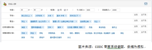 投放計(jì)劃的受眾管理,包括不同城市不同商圈受眾年齡、性別、職業(yè)、學(xué)歷、收入、消費(fèi)計(jì)劃等。