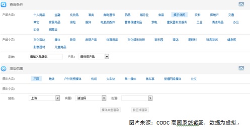 按照行業(yè)大類、行業(yè)小類、品牌、產(chǎn)品進(jìn)行選擇,可渲染在不同城市、不同商圈的戶外媒體投放策略,為新的投放計(jì)劃提供參考依據(jù)。