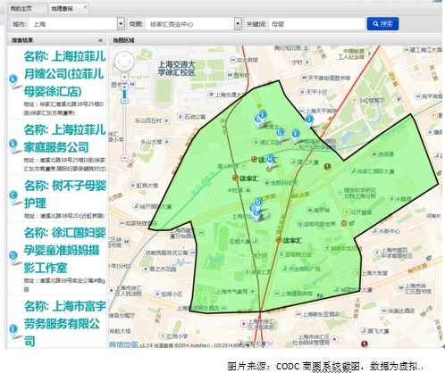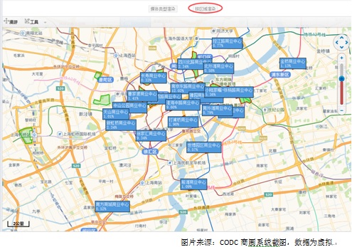 商圈系統(tǒng)兼具了地圖功能,可進(jìn)行地理位置的精確查詢,并明確地理位置所屬商圈。