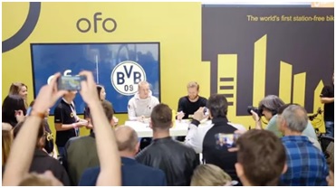 ofo 小黃車在 2017 德國(guó)法蘭克福汽車展 IAA 上宣布了這一合作,多特蒙德陣中的世界杯冠軍成員許爾勒和中場(chǎng)球員羅德出席了簽約儀式。今年夏天,多特蒙德中國(guó)行期間也曾在廣州參與 ofo 的營(yíng)銷活動(dòng),兩名球員出席了這次商業(yè)活動(dòng)。