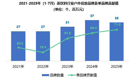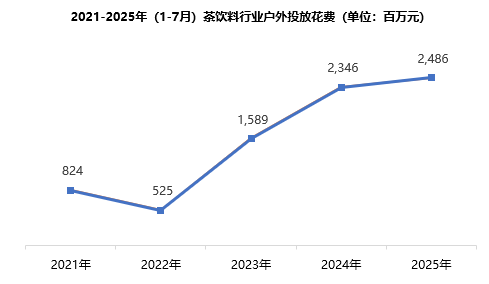 2021-2025年(1-7月)茶飲料行業(yè)戶外媒體投放情況