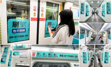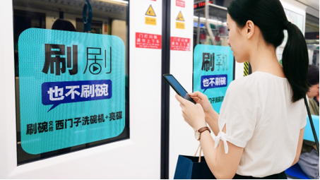 為了放大這一心智,品牌在梯媒視頻、地鐵車(chē)廂、站亭燈箱等高頻生活場(chǎng)景媒介,集中展示了 10 余種「刷 XX 也不刷碗」的具體情境,讓消費(fèi)者在通勤路上被反復(fù)提醒。同時(shí)還結(jié)合公交車(chē)終日「刷街」的特性,定制了 「寧愿刷玻璃,也不刷碗!」的文案,讓公交車(chē)成為移動(dòng)的「刷街」廣告,將輿論話題推向高潮。