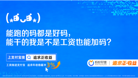模擬電腦故障的藍(lán)屏畫面、古早顏文字表情包配上程序員諧音梗,以及 JAVA、BUG、文檔、代碼等職業(yè)術(shù)語的熟練運(yùn)用,一串串「黑話」配上「?資揣進(jìn)?付寶,年收穩(wěn)著沖 3%」的 slogan,精準(zhǔn)拿捏程序員們的真實(shí)想法。