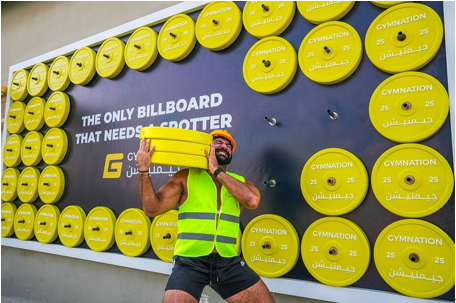 阿聯(lián)酋擁有世界最高的建筑,現(xiàn)在它又擁有了世界上最重的廣告牌——由GymNation搭建的新廣告牌,這塊重達(dá)一噸的廣告牌,由四十塊杠鈴片連接而成。該公司聲稱這一廣告牌打破了所有已知的戶外廣告重量紀(jì)錄。