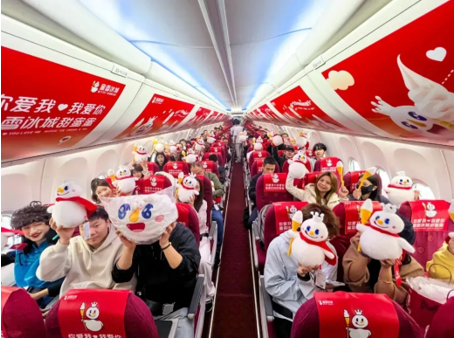 搭乘首航的乘客,走進機艙就能看到座位上的一份超級大禮包:內有雪王給乘客的一封信、雪王玩偶、雪王披風蓋毯、雪王百變盲盒、按壓會跑雪王飛機玩具。瞬間煥發(fā)了網(wǎng)友的童心,看小紅書上的興奮曬圖,就知道大家有多開心!
