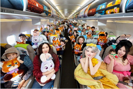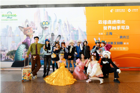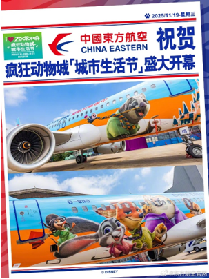《瘋狂動物城 2》上映前夕,中國東方航空與迪士尼影業(yè)聯(lián)合推出「迪士尼·瘋狂動物城號」主題彩繪飛機,并于 11 月 19 日在上海浦東機場完成首航。主題航班從上海浦東飛往北京首都機場,151 名旅客率先體驗了這場連接地面與云端的「空中奇旅」。