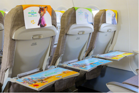 客艙內(nèi)部更是驚喜連連,動物城街景、朱迪和尼克等角色被延展到行李架、小桌板、頭枕巾等細節(jié),讓旅客從落座那一刻起便進入故事場域。飛行途中,乘務(wù)員還會佩戴主題飾品,在互動環(huán)節(jié)為旅客送上多種周邊禮品。
