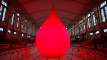 活動(dòng)的核心是一個(gè)巨型血滴雕塑,它以視覺(jué)化的方式呈現(xiàn)了英國(guó)女性每年因月經(jīng)量過(guò)多而流失的血液量——508萬(wàn)升,相當(dāng)于兩個(gè)奧運(yùn)會(huì)標(biāo)準(zhǔn)游泳池的容量。