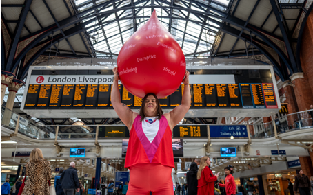 為了更生動(dòng)地展現(xiàn)這一點(diǎn),Bodyform讓被譽(yù)為“世界最強(qiáng)壯女性”的麗貝卡·羅伯茨在倫敦利物浦街車(chē)站扛起了一滴巨大的血滴。