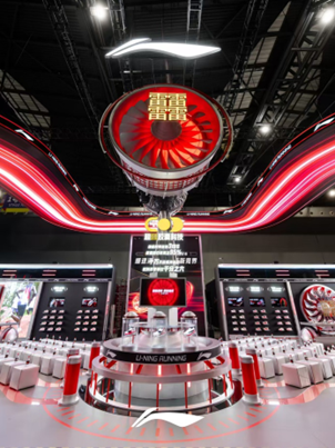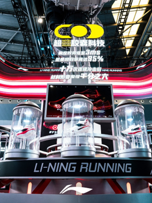 作為體博會(huì)中唯一參展的傳統(tǒng)國產(chǎn)品牌,李寧在現(xiàn)場搭建了一個(gè)充滿未來感的「能量中樞」展臺(tái),整體空間圍繞「超?膠囊」中底科技展開。品牌摒棄了生硬的參數(shù)羅列,而是通過可視化裝置與互動(dòng)實(shí)驗(yàn),讓跑者能夠直觀感受這項(xiàng)科技的推進(jìn)力、能量回彈與耐久性,將抽象數(shù)據(jù)轉(zhuǎn)化為可具身的體驗(yàn)。
