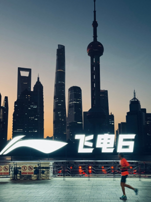 11 月 29 日傍晚,李寧在賽前舉辦分享會(huì),并以一場輕松的「飛電落日跑」陪伴跑者進(jìn)行最后調(diào)整,幫助大家以更穩(wěn)定、自信的狀態(tài)迎接比賽。更令人驚喜的是,品牌在外灘打造了一艘以飛電 6 渦輪為靈感的巨型「跑鞋船」,不僅成為賽事期間的標(biāo)志性景觀,更作為移動(dòng)加油站,全程陪伴跑者共同前進(jìn)。