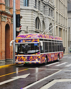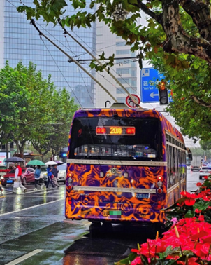 有心的朋友也回憶起,早在2023年10月,Burberry也投過一波公交車廣告。但是涂裝花樣是當季玫瑰印花主題,出來后的效果被網友調侃為,像一輛行動的虎皮卷。