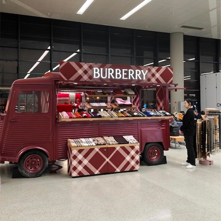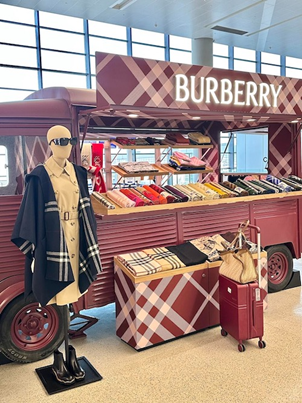 如果要透過以上,看清敘事轉向,還有一個動作可以納入?yún)⒖肌urberry近日在上海虹橋機場,還擺起攤賣圍巾。