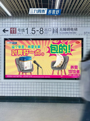 最近冬至,三九胃泰的抽象地鐵廣告又上新了,給在地鐵里的過路人送上一份溫暖的關(guān)懷。過節(jié)的儀式感是餃子給的,吃餃子的快樂是好胃給的。