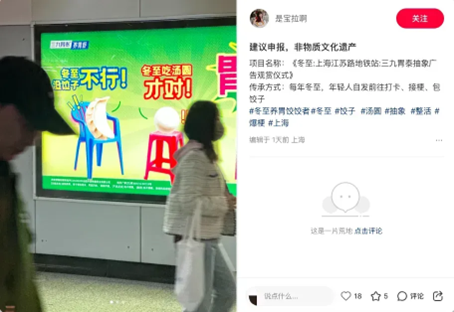 有個網(wǎng)友銳評:“建議申報,非物質(zhì)文化遺產(chǎn)”因為每年冬至這段時間,三九胃泰就以極其抽象的精神面貌出現(xiàn)在地鐵站里。。三九胃泰地鐵廣告出圈,疑似“60后老編”上崗?