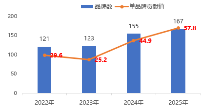 品牌:數(shù)量及單品牌貢獻(xiàn)值逐年增長
