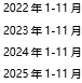 2022年-2025年(1-11月)護(hù)膚用品各市場分級(jí)投放占比(單位:%)