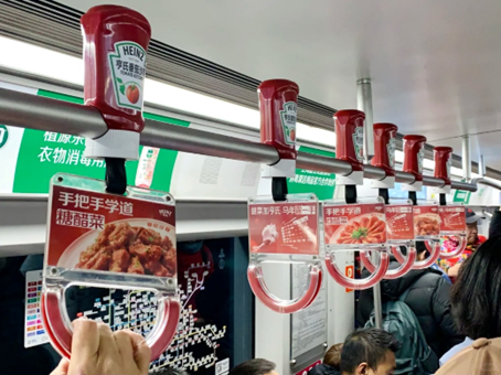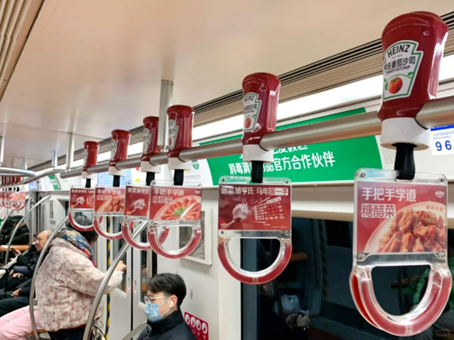 新年將至,亨氏又在線下出圈了!近日,亨氏在北京地鐵 10 號線投放了一批品牌番茄醬形狀的扶手,并在扶手兩側(cè)的廣告欄貼心的奉上了新年想要做出「美味糖醋菜」的秘法——5 勺亨氏涂馬頭、4 勺白醋、3 勺糖、2 勺清水、1 碗汁,巧妙利用常見媒介的非常規(guī)形態(tài),吸引了一波互聯(lián)網(wǎng) UGC 流量。