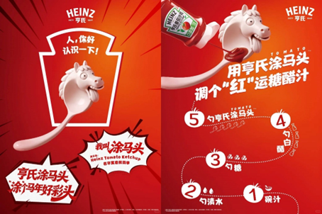 而在線上,品牌也隨即發(fā)布新年 tvc,以番茄醬的英文諧音 tomato——「涂馬頭」為靈感,教大家燒出美味好吃的糖醋菜,一起「新年露一手,涂個馬年好彩頭」。
