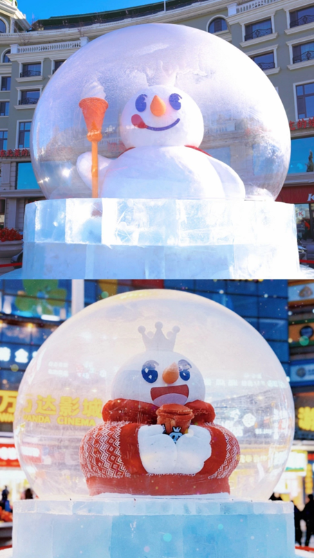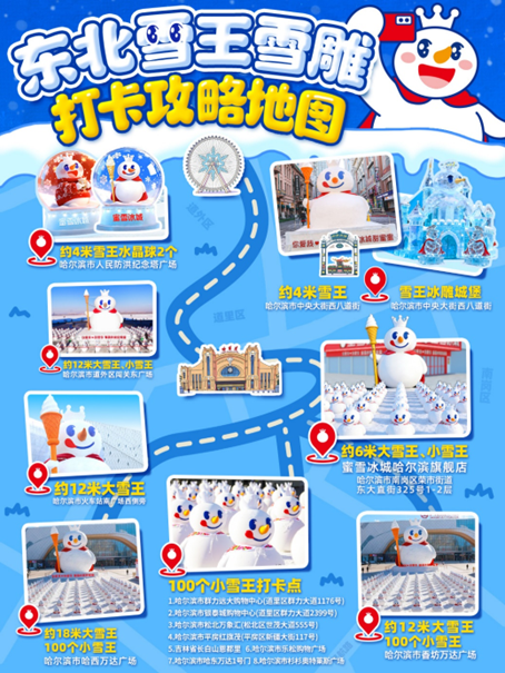 除了延續(xù)去年的雪雕方陣,蜜雪冰城還新增了帶滑梯的雪王冰雕城堡、4 米高水晶球以及 18 米高的「雪王」巨型雪雕,并貼心推出打卡攻略,邀請游客感受雪王的甜蜜暴擊。