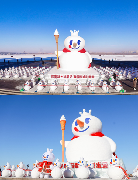 繼去年蜜雪冰城在哈爾濱安排了雪雕版的雪王方陣之后,今年雪王卷土重來,繼續(xù)在哈爾濱開疆拓土,拓展自己的冰雪勢力,直接將城市爆改成蜜雪「濱」城。