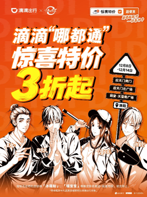 此外,滴滴這次還在洛陽與國漫《一人之下》聯(lián)動,將 IP 元素與「3 折 OK」文案結(jié)合,既滿足了二次元粉絲打卡 IP 周邊的需求,又讓文案借助地標流量實現(xiàn)二次傳播,讓年輕同好者在熟悉的語境中接收「3 折低價」信息,實現(xiàn)了 IP 流量到文案認知再到消費鏈路的精準轉(zhuǎn)化。此次,滴滴不僅解決了用戶「省錢出行」的需求痛點,更以一種幽默、輕松的方式陪伴用戶跨年。