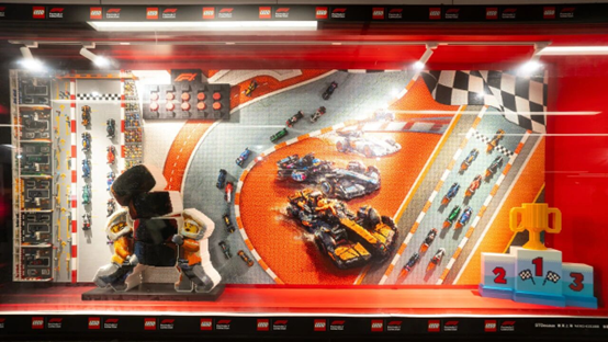 其中最吸睛的當(dāng)屬一面巨型樂(lè)高積木拼圖櫥窗,由 55 萬(wàn)塊積木、260 個(gè)樂(lè)高人仔與 30 輛樂(lè)高 F1 賽車(chē)拼搭而成,耗時(shí) 930 小時(shí)精心打造,還原賽事中發(fā)車(chē)起步、彎道超車(chē)、沖線爭(zhēng)冠的名場(chǎng)面。