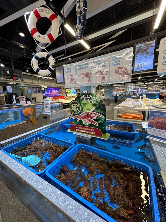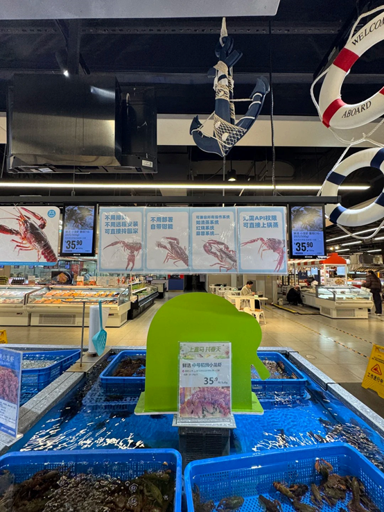 就在這股「養(yǎng)蝦」熱潮席卷全網(wǎng)之際,盒馬敏銳捕捉到了這一熱點(diǎn),在其線(xiàn)下門(mén)店的活鮮售賣(mài)區(qū)巧妙借勢(shì),推出了一組令人會(huì)心一笑的創(chuàng)意海報(bào)。面對(duì)科技圈「一蝦難求」、排隊(duì)部署的焦慮,用貨架上實(shí)實(shí)在在的小龍蝦給出了硬核回應(yīng)。