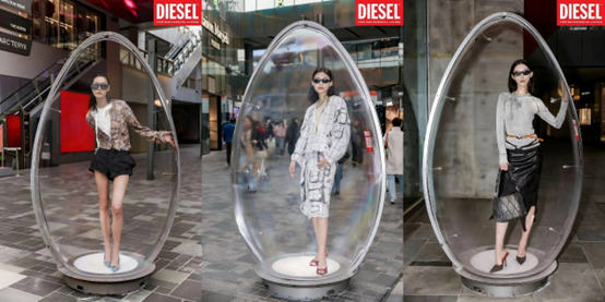 最近,三里屯突然出現(xiàn)了一批站在透明蛋殼里的模特,她們身著時尚服裝和來來往往的用戶進(jìn)行互動,一極具視覺沖擊力的場景迅速在小紅書等社交平臺引發(fā)熱議,成為京城最新的潮流打卡地。實(shí)際上,這是國際丹寧品牌 DIESEL 特別打造的裝置藝術(shù),作為《彩蛋尋寶》中國首發(fā)站,該活動本質(zhì)是對今年年初 DIESEL 在米蘭時裝周上顛覆性發(fā)布形式的本土化致敬與延續(xù),旨在將秀場從封閉的精英空間徹底推向開放的公共街頭。